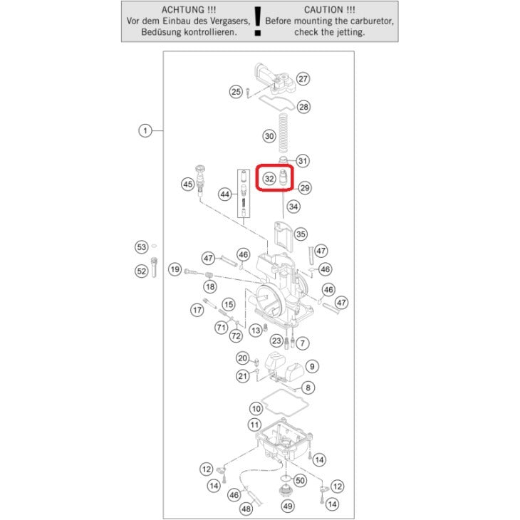 Secções > Peças KTM > Boquilha Carburador (Ref. 32)