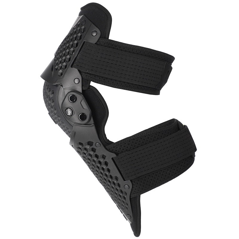 - O mecanismo de dupla articulação e a construção em plástico semirrígido foram concebidos para cumprir a certificação de Nível 2, oferecendo resistência, conforto e adaptabilidade aos movimentos do joelho durante a condução.