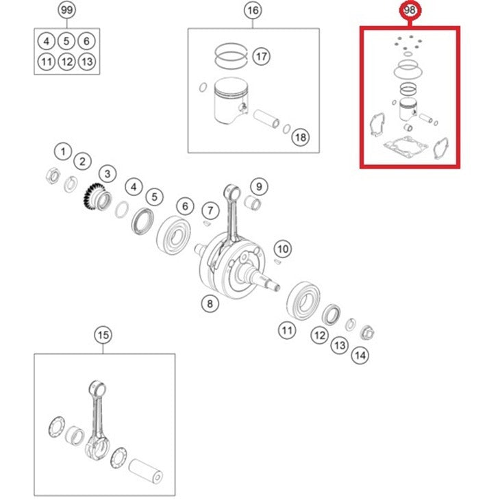 Manutenção > Pistões > Kit Completo Pistão+Juntas Original KTM EXC/SX 250 17-18 e HUSQVARNA TE 250 17-18 Grupo I