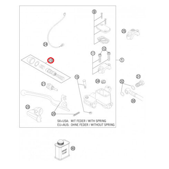 Kit de Reparação Bomba de Travão Dianteiro KTM EXC/EXC-F 10-13, SX/SX-F 09-13 (Brembo)