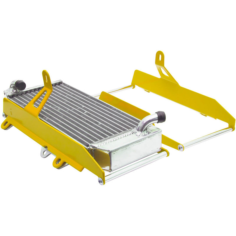- Desenhadas como uma espécie de "concha", a protecção de radiador assegura um perímetro de segurança, sem que os seus pontos de fixação estejam em contacto com o radiador. A fixação é efectuada ao quadro da moto. Assim, os impactos nunca são transmitidos directamente ao radiador;